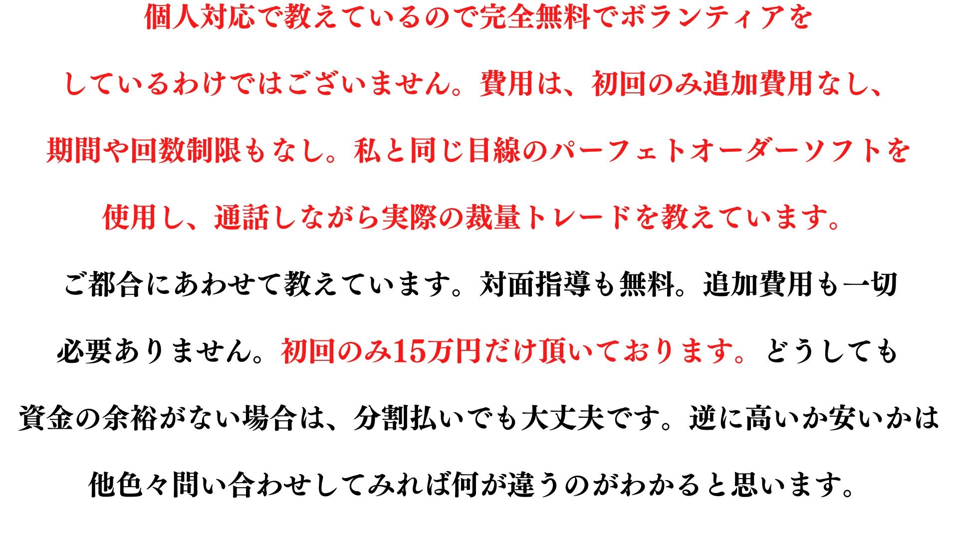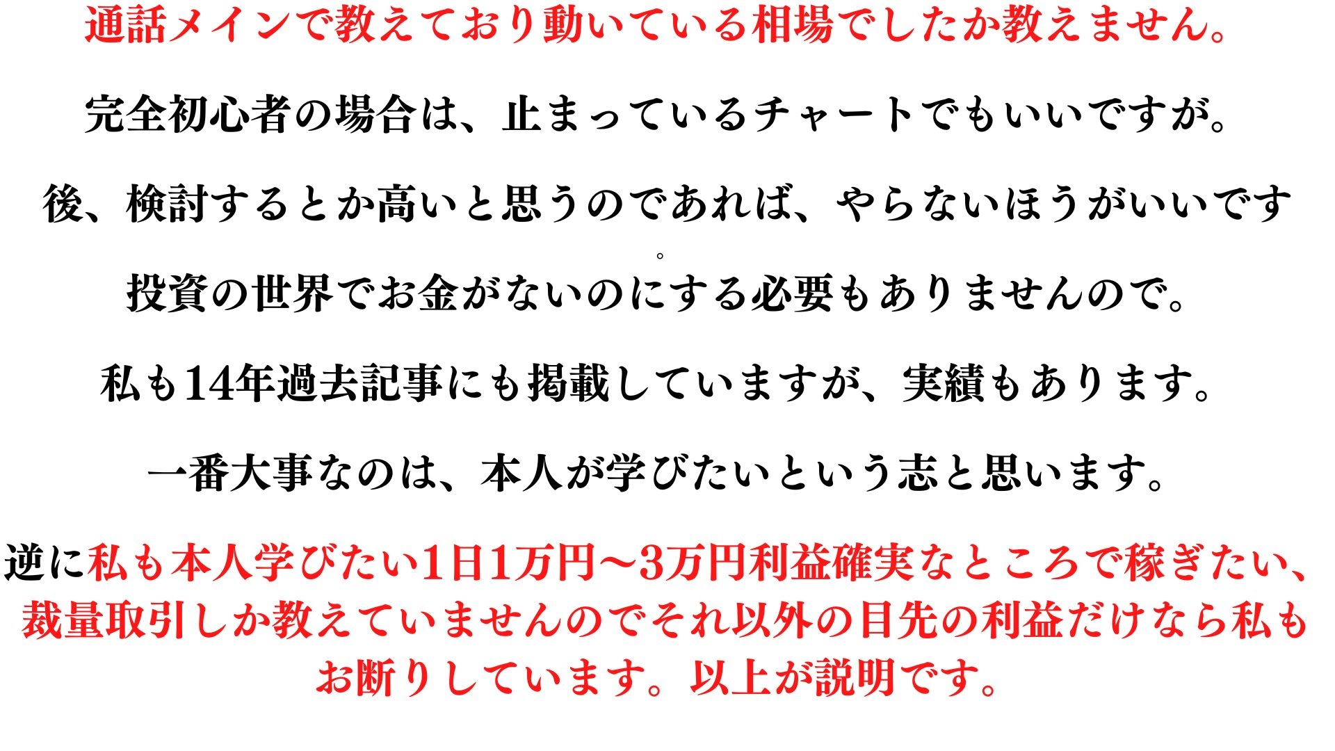 他で問い合わせすれば以下の通りです!私は、全て対面&完全個別&リアルトレードしか